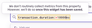 If you are building a widget with transaction data, and would like to use event-like filters (eg. transaction.duration:>100ms